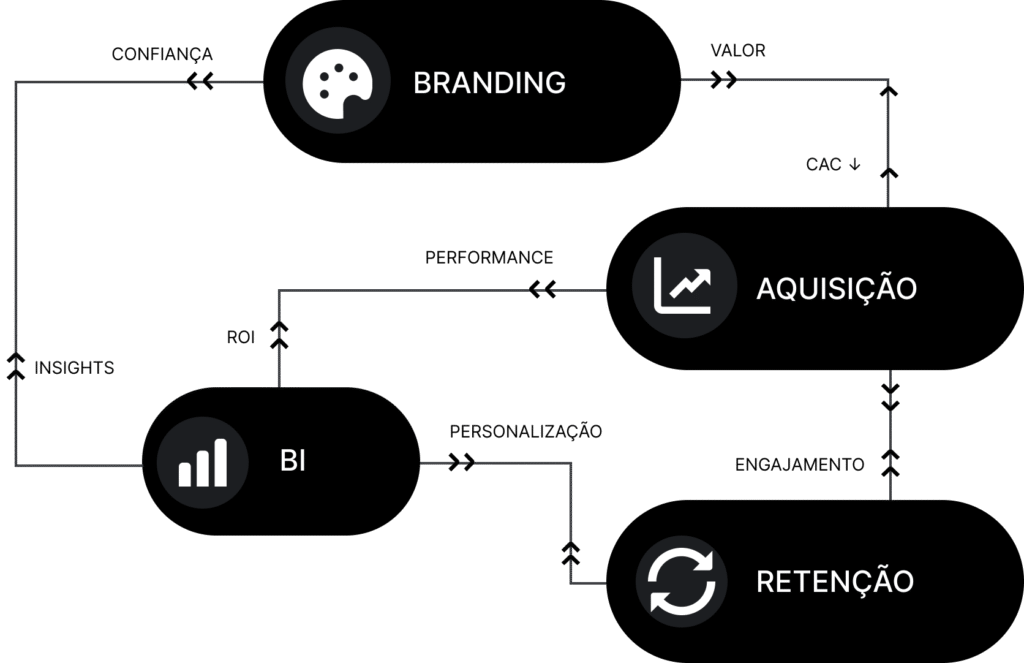 Um panorama claro e visual de como a NOR conecta aquisição, retenção e branding para gerar impacto em toda a jornada do cliente.