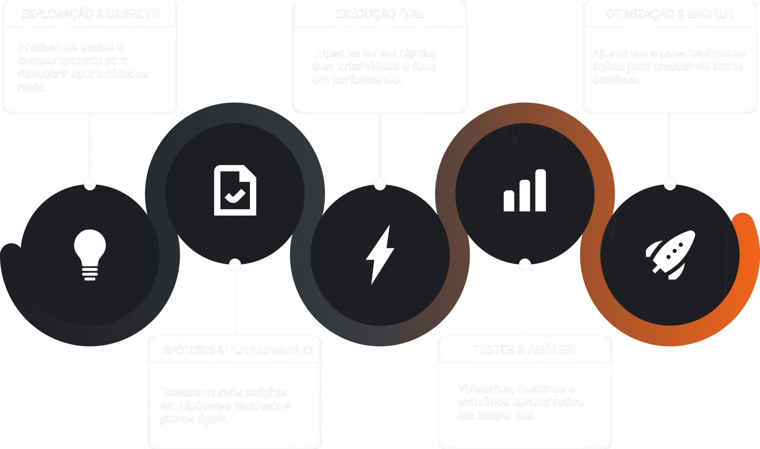 A NOR aplica ciclos contínuos de testes, análises e otimizações para garantir evolução constante e crescimento escalável.